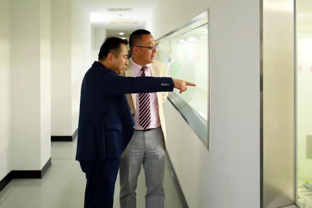 劉雍董事長(zhǎng)引導(dǎo)徐富成社長(zhǎng)參觀浩和中央廚房