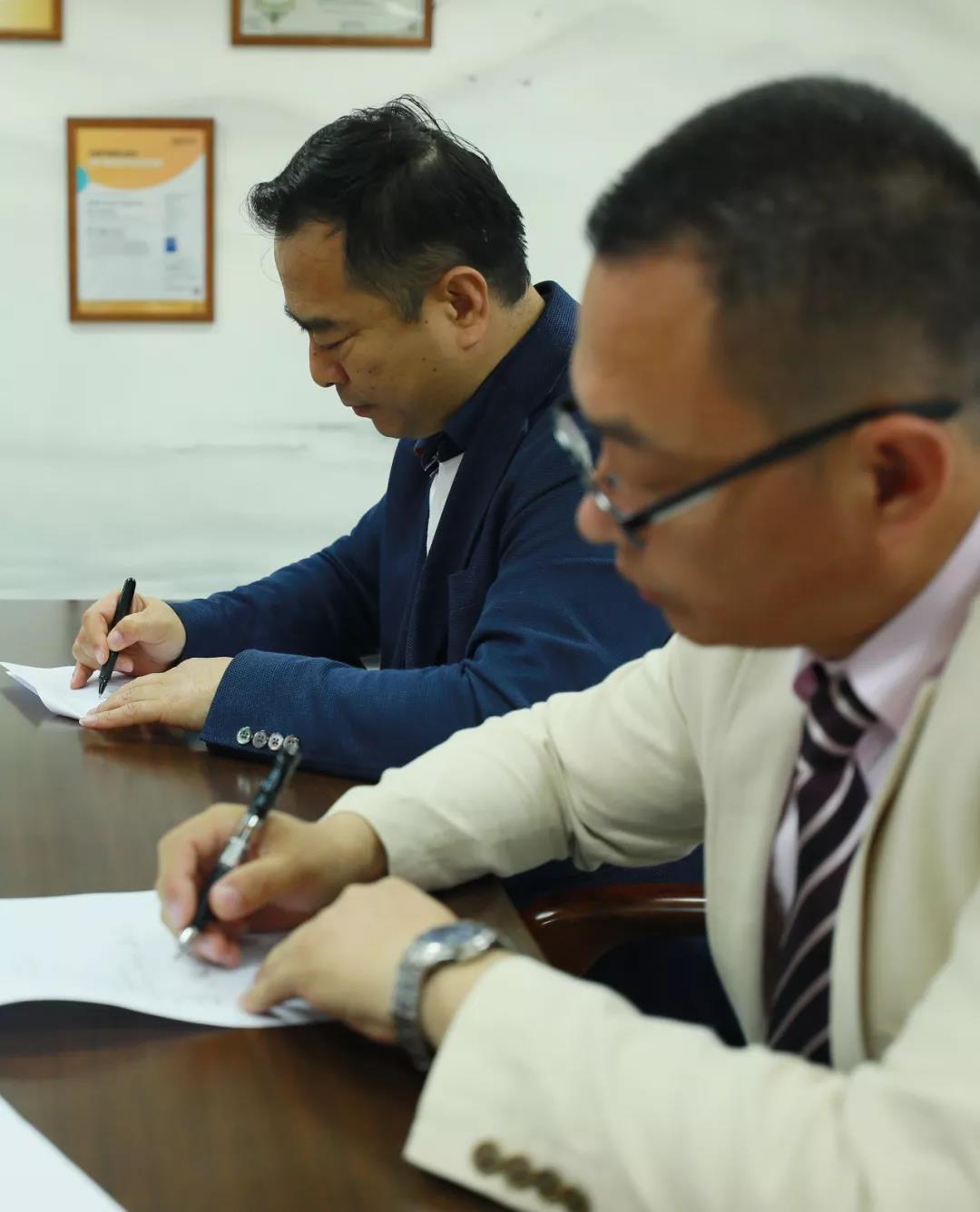 劉雍董事長(zhǎng)與徐富成社長(zhǎng)分別代表浩和與太鼓橋株式會(huì)社進(jìn)行簽約